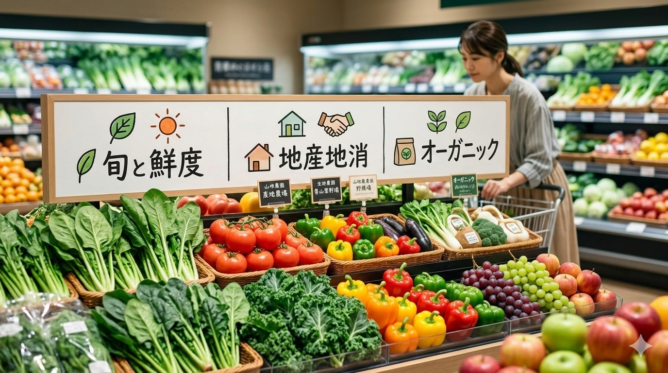 旬や鮮度に加え、日常使いのしやすさ、オーガニックや地元農家とのつながりといった姿勢も、青果が充実しているスーパーを見極めるポイントになります。