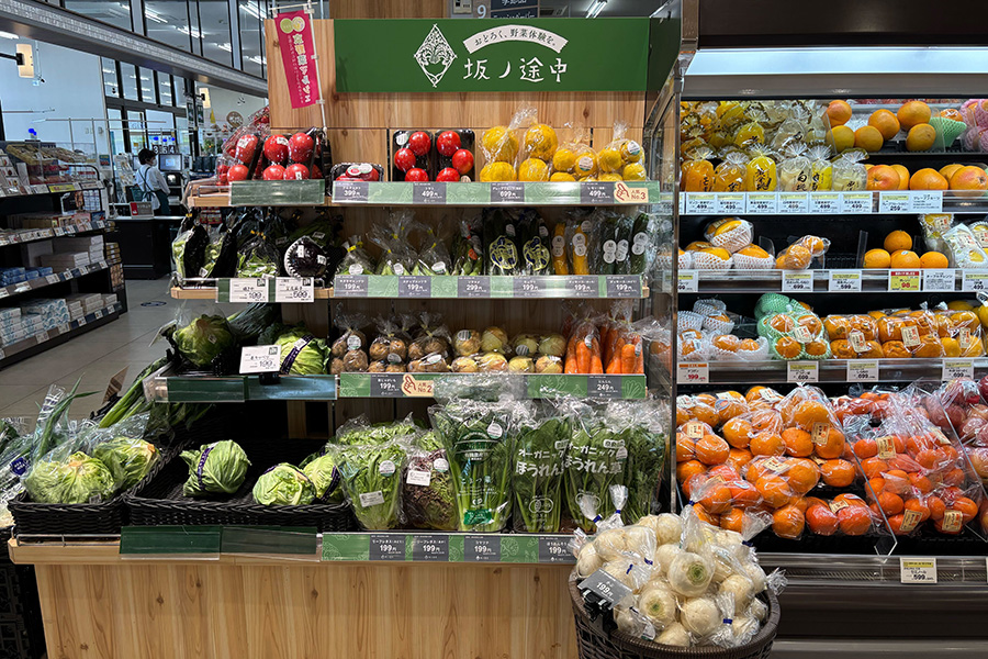 - 地元産野菜を扱うコーナーもあり、地域色のある品ぞろえ