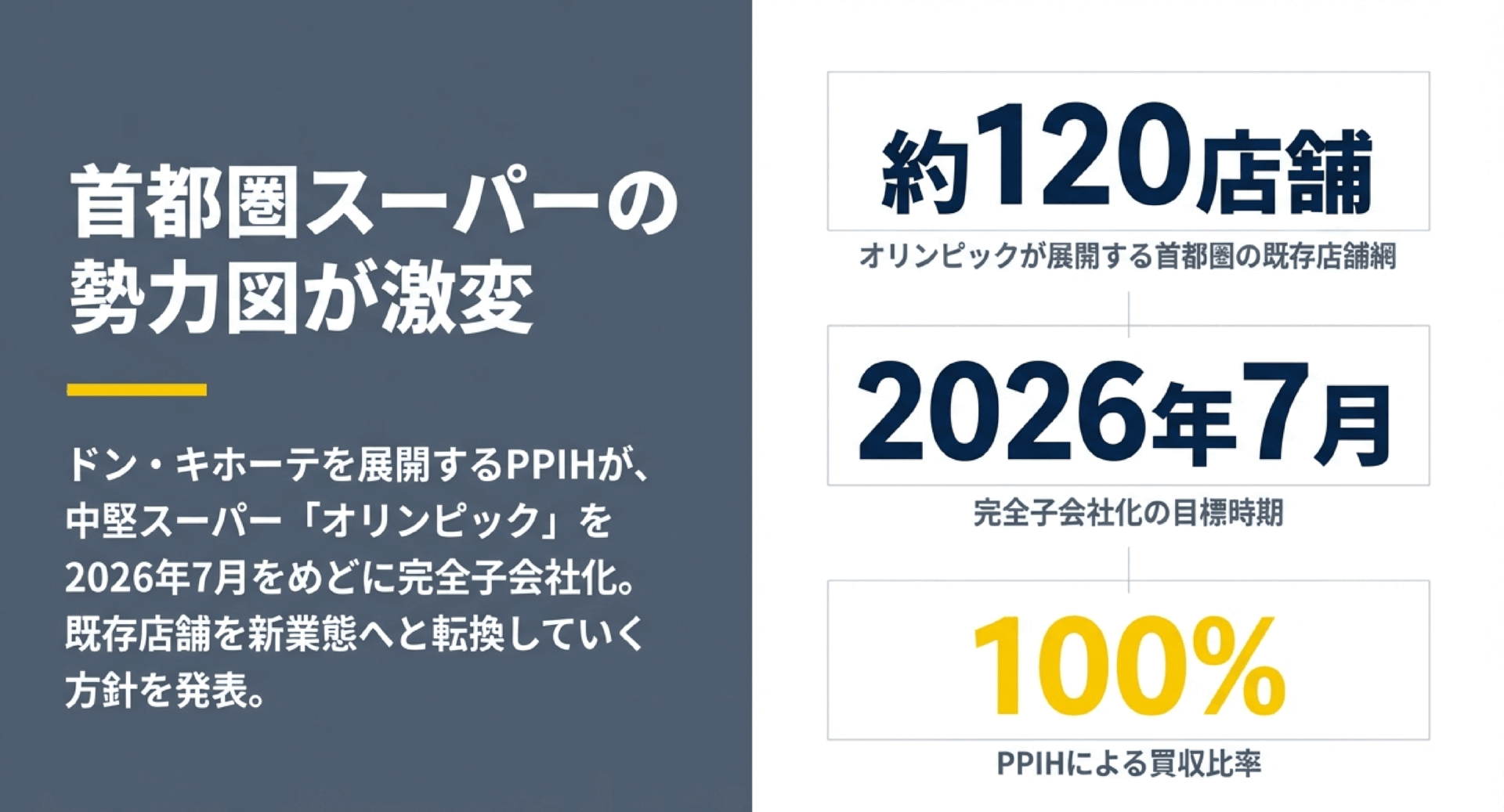 今回のPPIHによるオリンピック買収は、首都圏スーパー業界における勢力図を大きく塗り替える可能性があります。