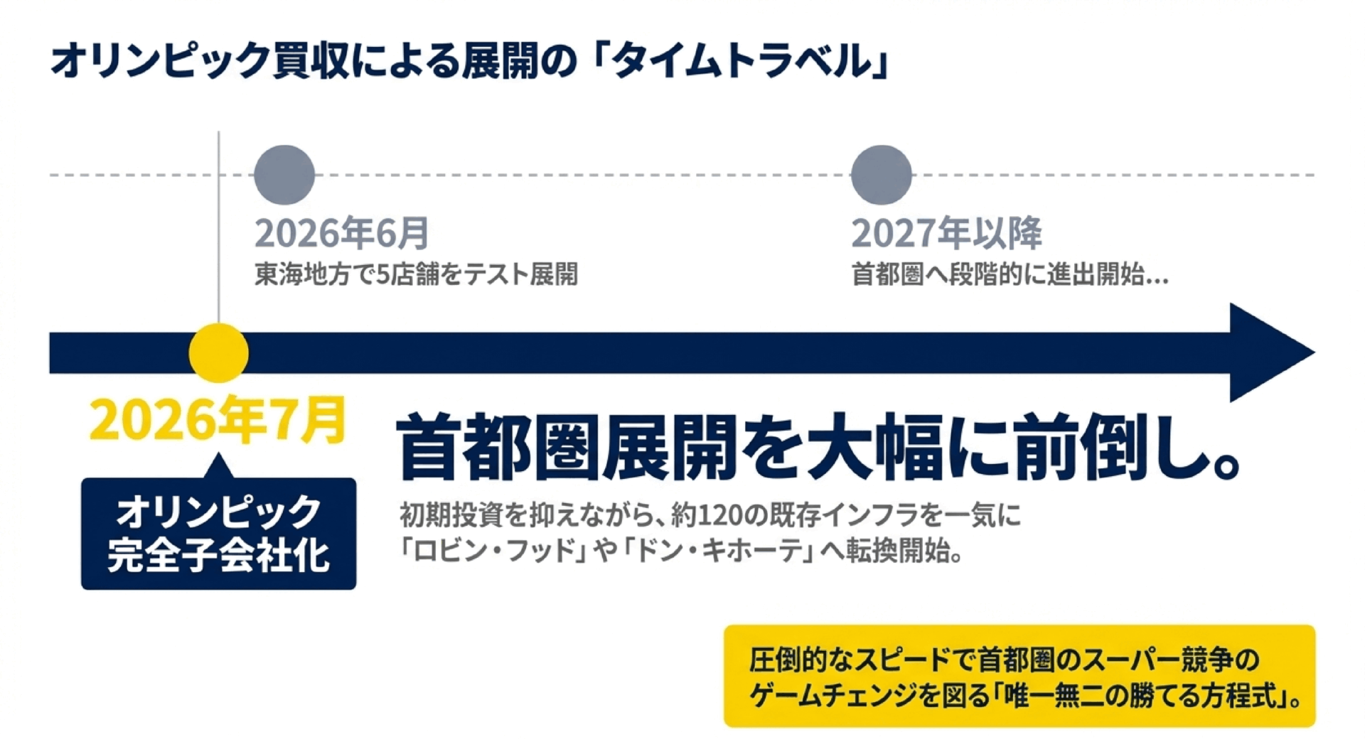 オリンピックの既存店舗をロビン・フッドに転換することで、初期投資を抑えながら一気に首都圏での店舗網を拡大できるからです。